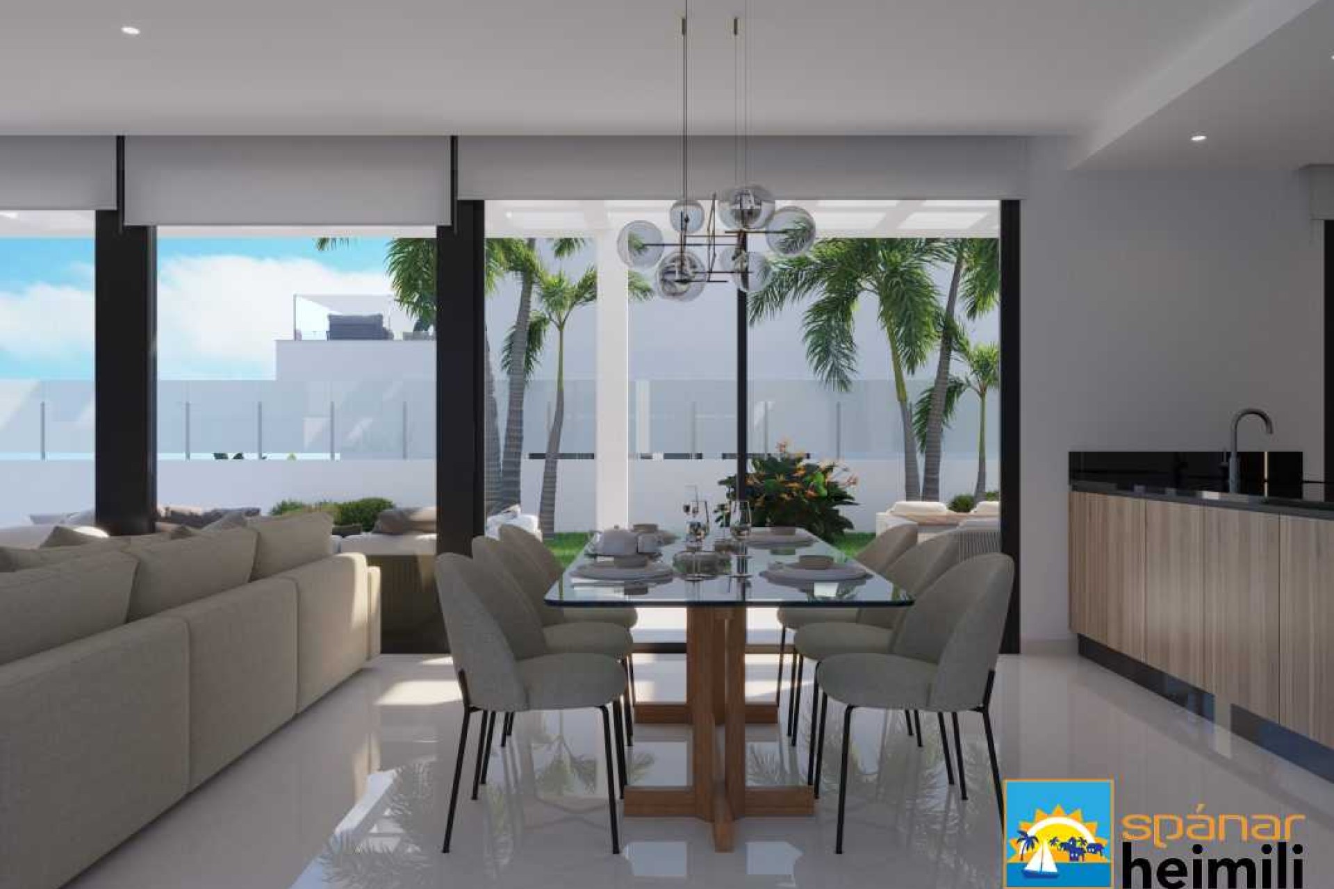 Las villas se distribuyen en dos plantas, con la entrada principal en la planta baja, donde hay un amplio salón-comedor combinado con una cocina abierta totalmente equipada y un amplio dormitorio con baño en suite. Tanto el salón como el dormitorio tienen ventanas correderas de suelo a techo que proporcionan mucha luz natural, y también dan acceso al patio parcialmente cubierto y a la piscina. En la planta superior hay dos dormitorios adicionales, cada uno con su propio baño y terraza privada. Debajo de la villa hay un aparcamiento cubierto con espacio para dos coches. Es posible añadir un sótano con habitaciones adicionales o espacio de trabajo, gimnasio, garaje, etc. La villa tiene etiqueta energética A y calefacción por suelo radiante en todos los baños, preinstalación de placas solares y jardín con sistema de riego automático.