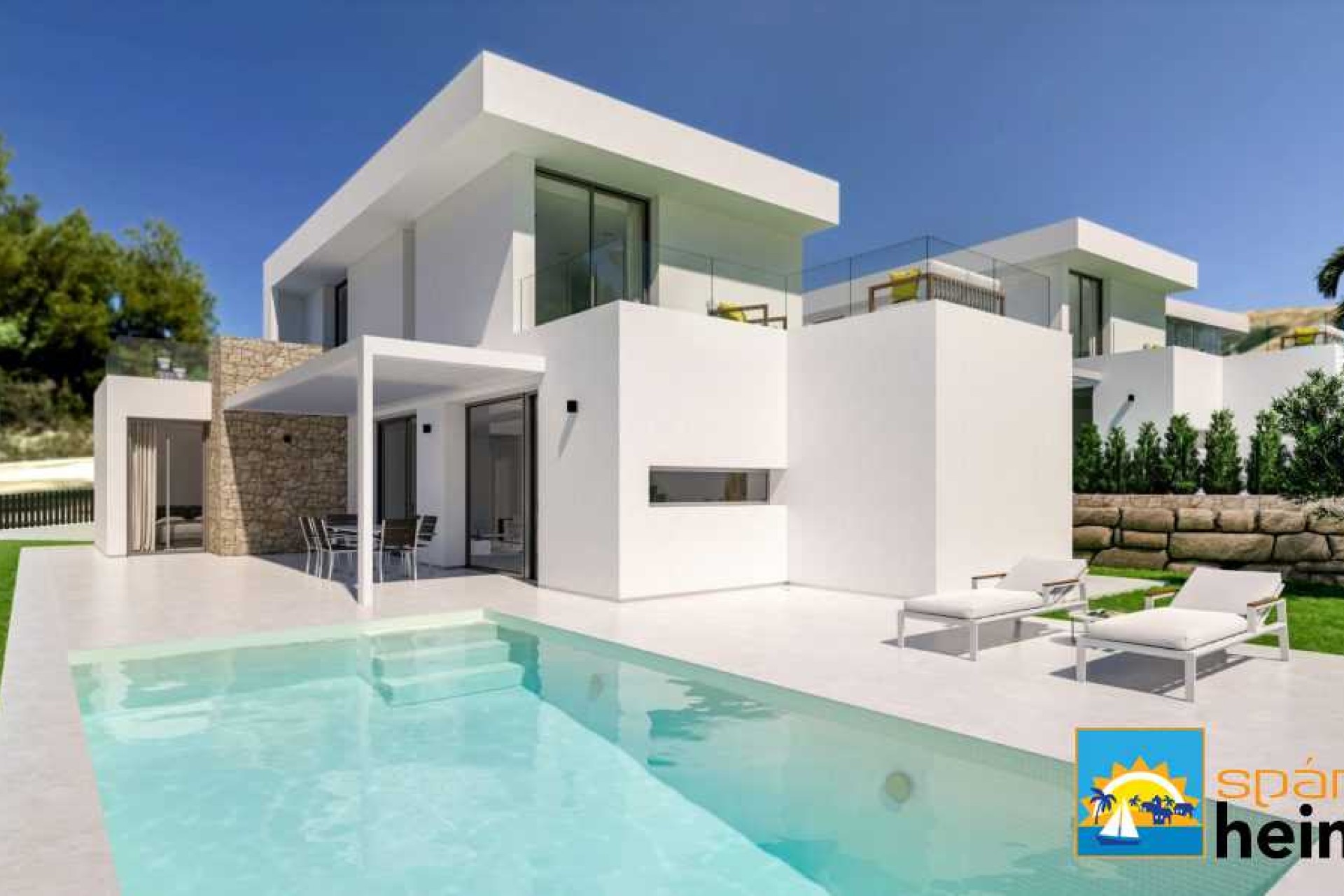 Un diseño moderno y elegante combinado con una calidad excepcional, estas viviendas unifamiliares están en construcción en la zona residencial de Sierra Cortina, ubicada sobre Benidorm. Las viviendas cuentan con 3 dormitorios y 3 baños. Las propiedades se distribuyen en dos plantas, con una espaciosa y luminosa sala de estar y comedor con cocina abierta en la planta baja, junto con un dormitorio con baño en suite y espacio para lavadora y secadora. Hay acceso directo a la terraza tanto desde el salón como desde el dormitorio. En la planta superior de la villa se encuentran dos dormitorios adicionales, cada uno con baño privado y amplios armarios empotrados. Ambos dormitorios disponen de balcón privado. La propiedad incluye una piscina privada y un hermoso jardín. Aire acondicionado con bomba de calor, sistema de ventilación y sistema de riego automático para el terreno. Además, hay un espacio de estacionamiento en la parcela para un coche. Esta excelente ubicación está cerca de dos campos de golf, del centro comercial La Marina y de las hermosas playas de arena de Playa Poniente. A solo 40 minutos en coche del aeropuerto de Alicante,