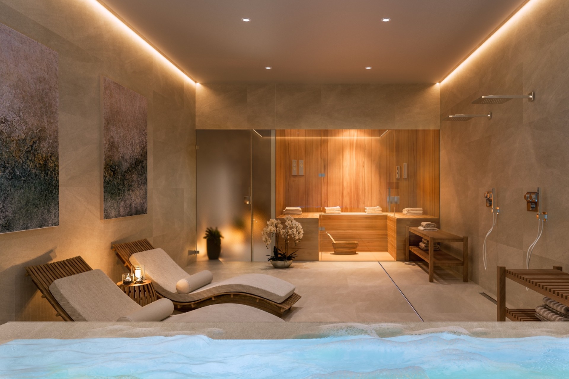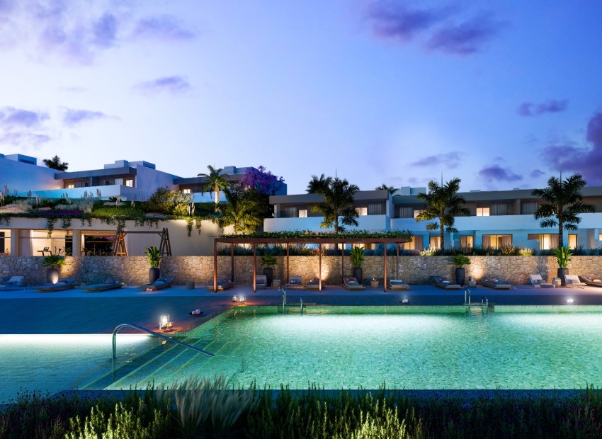 Brillante casa de lujo con terraza en la azotea y vista al mar.