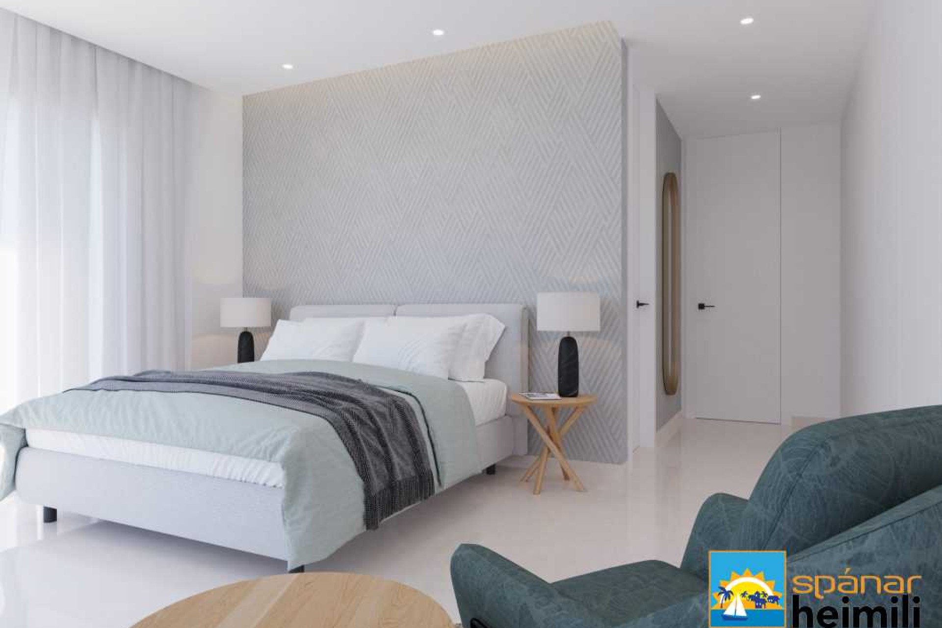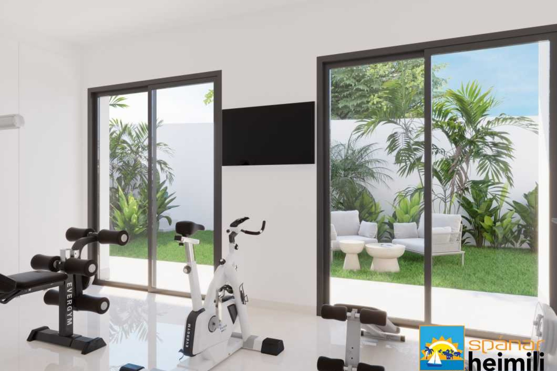 Einbýlishúsin eru á tveimur hæðum, með aðalinngangi á jarðhæð, þar er rúmgóð samsett stofa og borðstofa með fullbúnu opnu eldhúsi og rúmgott svefnherbergi með en-suite baðherbergi. Bæði stofa og svefnherbergi eru með rennigluggum frá gólfi til lofts sem veita mikla náttúrulega lýsingu, og veita einnig aðgang að hluta yfirbyggðri verönd og að sundlauginni. Á efri hæð eru tvö svefnherbergi til viðbótar, hvert með sér baðherbergi og sérverönd. Undir einbýlishúsinu er yfirbyggð bílastæði með plássi fyrir tvo bíla. Möguleiki er á að bæta við kjallara með auka herbergjum eða vinnurými, líkamsræktarstöð, bílskúr o.fl. Einbýlishúsið er með orkumerki A og gólfhiti á öllum baðherbergjum, foruppsetning fyrir sólarrafhlöður og garður með sjáfvirku vökvunarkerfi.