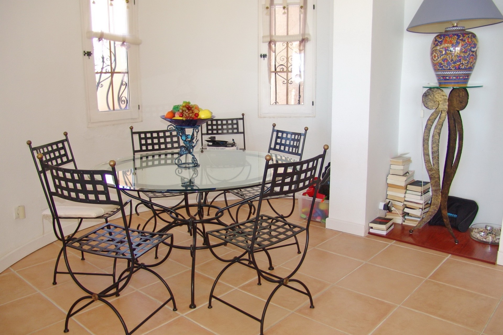 The villa is spread over multiple levels, maximizing space and natural light. The main floor features a spacious living-dining area with large windows that frame the breathtaking views of the Mediterranean, creating a seamless indoor-outdoor living experience. The fully equipped kitchen combines style and functionality, offering ample storage and workspace. This level also includes a bedroom with an en-suite bathroom, providing privacy and convenience.