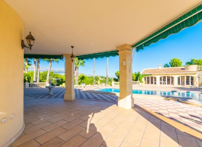 The outdoor spaces are designed for leisure and entertainment, featuring a large swimming pool, a relaxing Jacuzzi, a BBQ area, and expansive terraces where you can enjoy the spectacular surroundings. The six-car garage ensures ample parking and storage space.