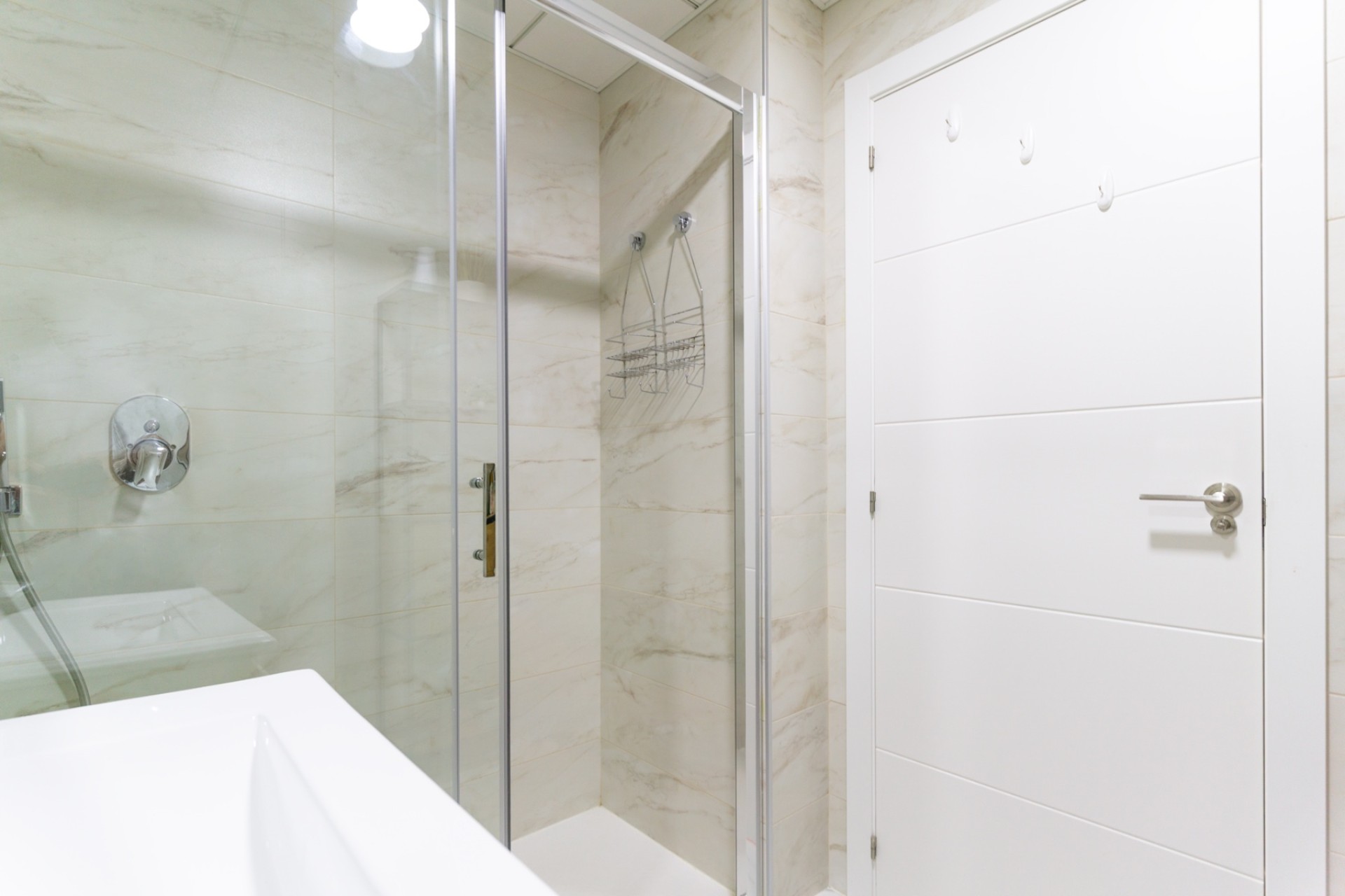 The apartment is equipped with air conditioning that also provides heating, and solar panels for hot water.